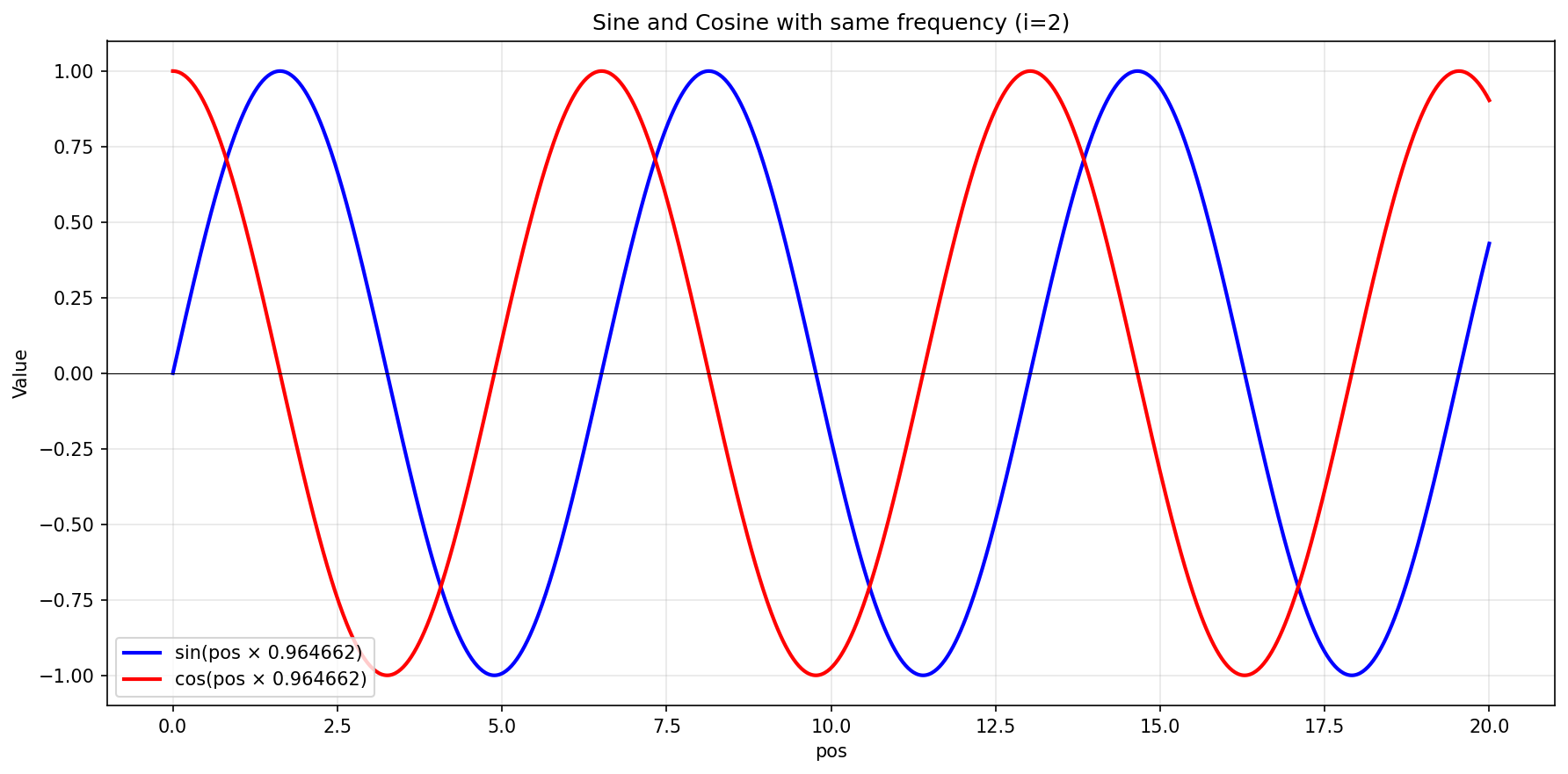 \sin(pos \times \frac{1}{10000^{4/1024}}) &\approx \sin(pos\times 0.964662) & (i=2)\\